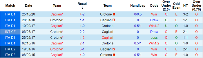 Crotone cũng không phải đối thủ xứng tầm với Cagliari. Bằng chứng: Cagliari bất bại và thắng tới 4/6 lần so tài gần nhất trên mọi đấu trường với CLB đang được dẫn dắt bởi HLV Giovanni Stroppa.