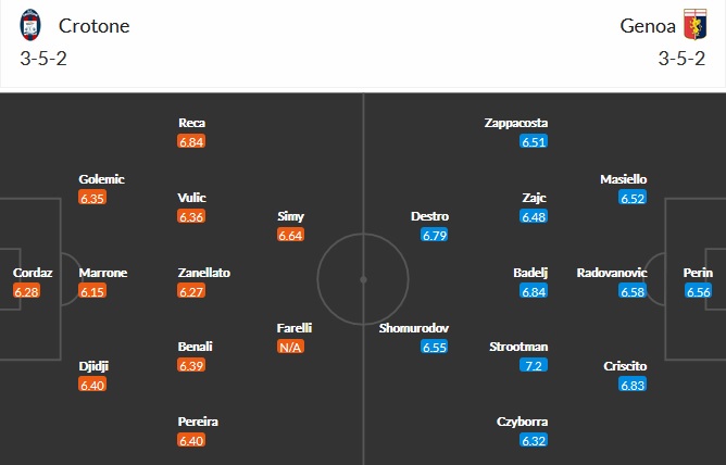 Dự đoán tỷ số Crotone 1-2 Genoa
