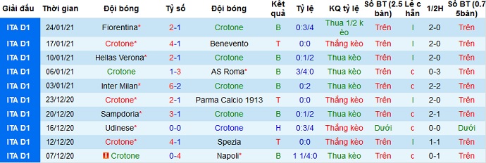 Phong độ của Crotone vẫn đang khá tệ khi ở 5 vòng đấu gần nhất Crotone chỉ thắng được 1 trận duy nhất, để thua tong cả 4 trận còn lại. Thế nhưng thành tích sân nhà của Crotone lại khá tốt với 3 trận thắng, 2 trận thua sau 5 trận gần nhất tại đây.