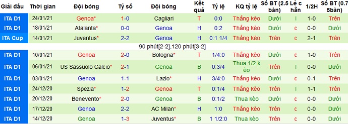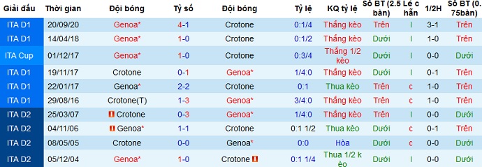 Đáng nói là trong cả 10 lần gặp nhau trước đó của hai đội chưa một lần nào Crotone giành được chiến thắng trước Genoa. Thế nên chọn cửa trên ở trận đấu này vẫn là phương án an toàn.