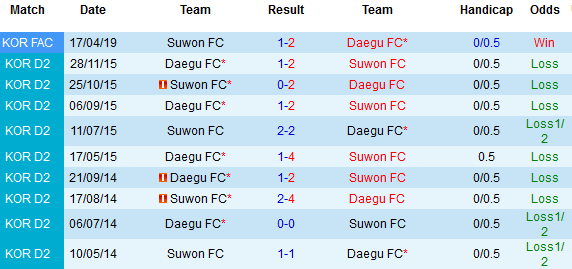 Deagu được đánh giá cao hơn nhưng rõ ràng chỉ số chấp 1/2 trên sàn giao dịch hiện nay là khá thấp để tin tưởng khi phía đối diện chỉ là tân binh như Suwon. Cần biết rằng, Suwon đã bất bại tới 15 trong 20 chuyến hành quân xa gần nhất là điểm tựa để hy vọng kết quả tích cực dành cho họ.