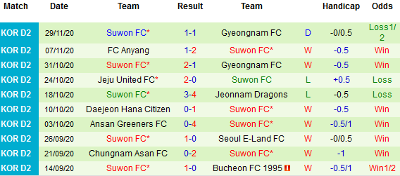 + Thống kê 10 trận gần nhất của Suwon