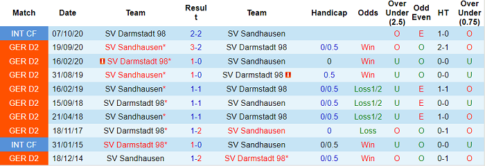 Cả Darmstadt và Sandhausen đều không có được thành tích tốt trong thời gian gần đây. Darmstadt toàn thua cả 4 vòng gần nhất, ghi vỏn vẹn 2 bàn thắng nhưng nhận tổng cộng 9 bàn thua.