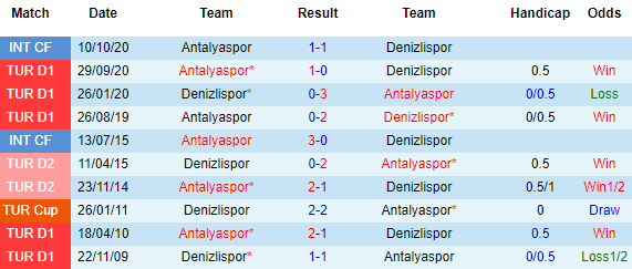 + Lịch sử đối đầu Denizlispor vs Antalyaspor