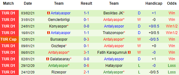 + Thống kê 10 trận gần nhất của Antalyaspor
