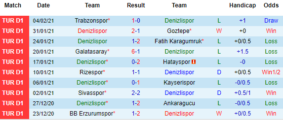 + Thống kê 10 trận gần nhất của Denizlispor