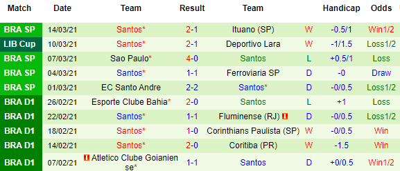 Trong khi đó, Santos dù được đánh giá cao hơn nhưng đại diện của Brazil lại có tâm lý không tốt ở những chuyến hành quân xa nhà. Theo đó thì 7 trận sân khách vừa qua, Santos đều chỉ biết hòa với thua. Nhưng nên nhớ phần lớn các trận đó Santos đều bị xếp ở thế cửa dưới.