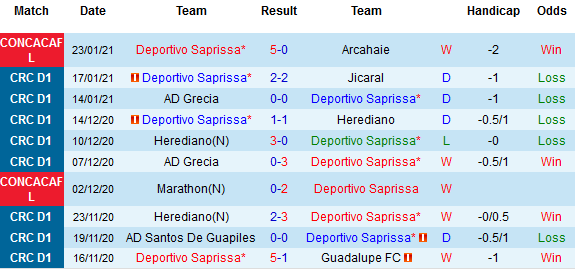 + Thống kê 10 trận gần nhất của Deportivo Saprissa