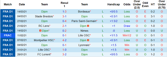 - Thống kê 10 trận gần nhất của Dijon