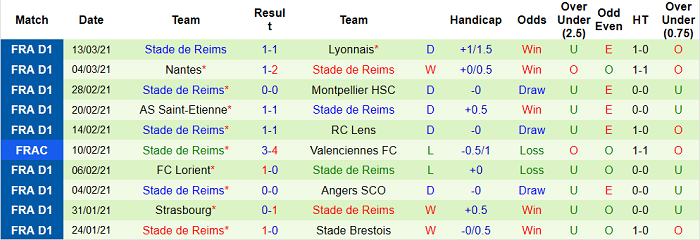 - Thống kê 10 trận gần nhất của Reims