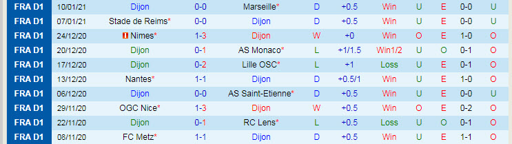 + Thống kê 10 trận gần nhất của Dijon