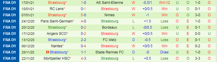 + Thống kê 10 trận gần nhất của Strasbourg