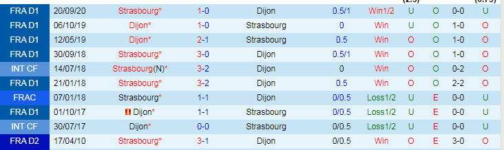 + Lịch sử đối đầu Dijon vs Strasbourg