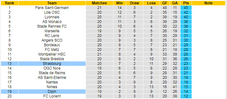 Nên nhớ, Dijon có phong độ không tốt khi thắng đúng 1 trận trong số 7 vòng đấu vừa rồi tại Ligue I. Đáng nói, họ đang là đội bóng duy nhất chưa từng nếm mùi thắng lợi khi được chơi trên sân nhà tại giải đấu số 1 đất nước hình lục lăng – hòa 5 và thua 5 trận.