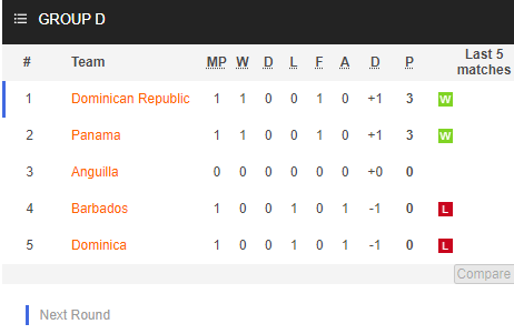 Ở trận ra quân, Dominica cũng đã thất bại trước CH Dominican với tỷ số tối thiểu. Đó là thất bại thứ 6 trong 7 trận gần đây của Dominica, nó cho thấy thực lực của đội bóng này rất yếu kém so với mặt bằng chung của khu vực.
