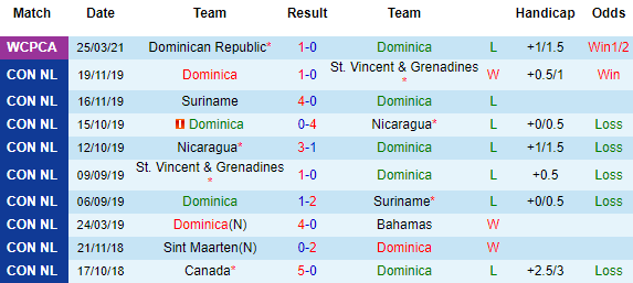 + Thống kê 10 trận gần nhất của Dominica