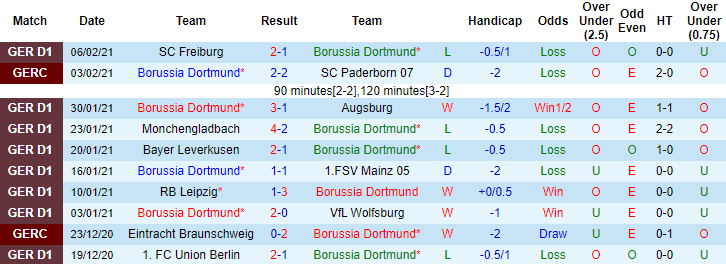 + Thống kê 10 trận gần nhất của Dortmund