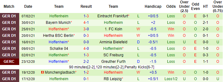 + Thống kê 10 trận gần nhất của Hoffenheim