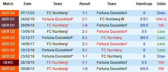 + Lịch sử đối đầu Dusseldorf vs Nurnberg