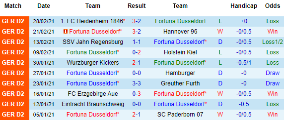 Dusseldorf thi đấu thất thường và hiện chỉ có vị trí thứ 7, kém đội đang đứng thứ 3 tới 7 điểm. Cách biệt đó là không nhỏ, bởi giải hạng 2 Đức có sự phân cấp không lớn, và để san bằng cách biệt hơn 2 trận thắng đó là điều không đơn giản, nhất là khi Dusseldorf lại có dấu hiệu sa sút thời gian qua.
