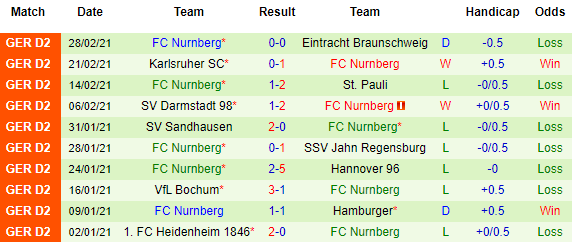 + Thống kê 10 trận gần nhất của Nurnberg