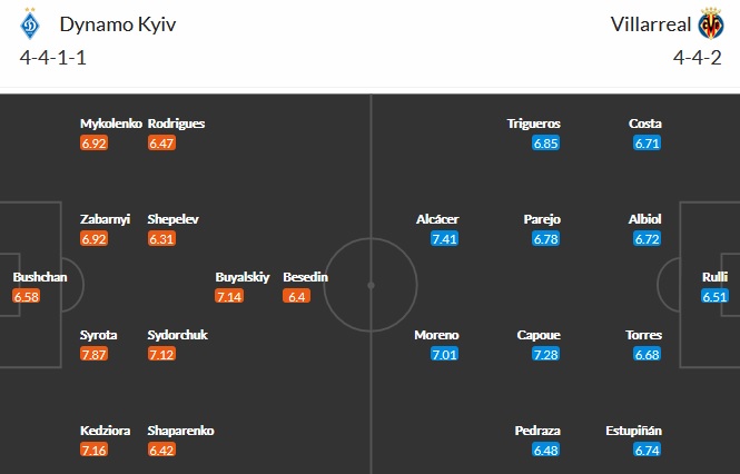 Đội hình dự kiến Dynamo Kyiv vs Villarreal