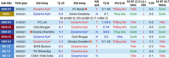 + Thống kê 10 trận gần nhất của Dynamo Kyiv