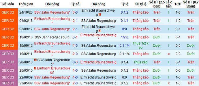 Tuy nhiên điều đáng nói là trong cả 10 lần gặp nhau trước đây giữa hai đội chưa khi nào Jahn Regensburg có được chiến thắng trên sân của đối thủ. Thế nên rất có thể với nỗ lực trụ hạng, Eintracht Braunschweig sẽ có được cho dù chỉ 1 điểm ở trận đấu này.
