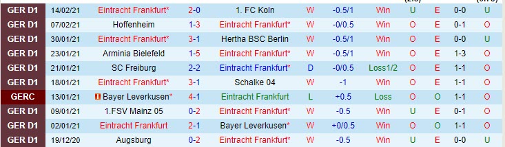 + Thống kê 10 trận gần nhất của Eintracht Frankfurt