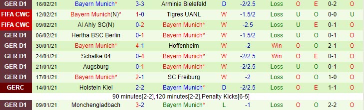 + Thống kê 10 trận gần nhất của Bayern Munich