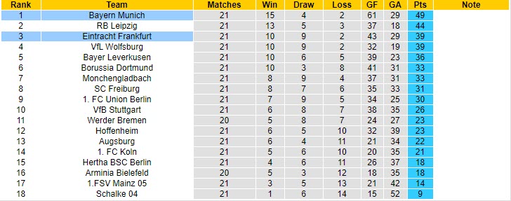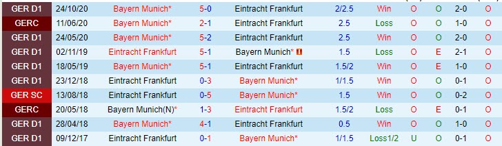 Phong độ và thống kê đối đầu Eintracht Frankfurt - Bayern Munich gần đây: