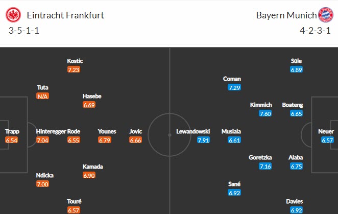 Đội hình dự kiến Eintracht Frankfurt vs Bayern Munich: