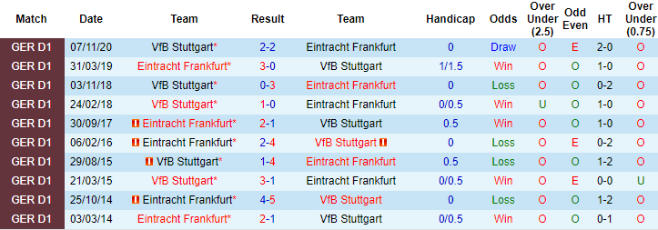 Vòng đấu gần nhất Eintracht Frankfurt đã bất ngờ bị đội chiếu dưới Bremen đánh bại với tỷ số 1-2. Tuy nhiên đó là trận đấu mà Eintracht Frankfurt phải chơi trên sân khách. Trở lại sân nhà cuối tuần này tiếp đón đối thủ Stuttgart, Eintracht Frankfurt hứa hẹn sẽ có 3 điểm trọn vẹn.