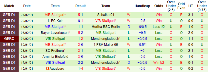 + Thống kê 10 trận gần nhất của Stuttgart