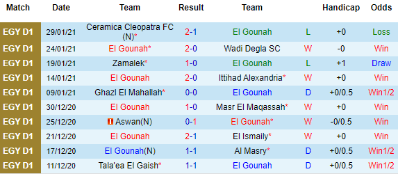 + Thống kê 10 trận gần nhất của El Gouna