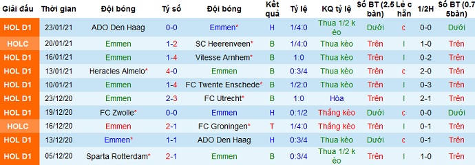 + Thống kê 10 trận gần nhất của Emmen