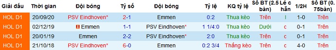 Mặc dù trong 2 lần đối đầu ở mùa giải trước Emmen có thành tích không quá tệ trước đối thủ khi hòa 1-1 trên sân nhà và thua 1-2 trên sân khách nhưng hiện tại phong độ của đội bóng đang rất sa sút. Không những thế ở 4 chiến thắng gần đây của PSV Eindhoven tại giải quốc nội, họ đều thắng cách biệt từ 2 bàn trở lên. Bởi thế lựa chọn kèo trên ở trận đấu này hoàn toàn là hợp lý.