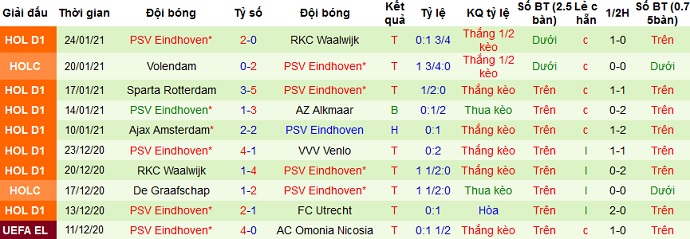 + Thống kê 10 trận gần nhất của PSV Eindhoven