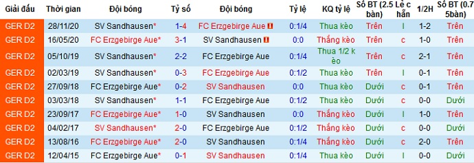 + Lịch sử đối đầu Erzgebirge Aue vs Sandhausen