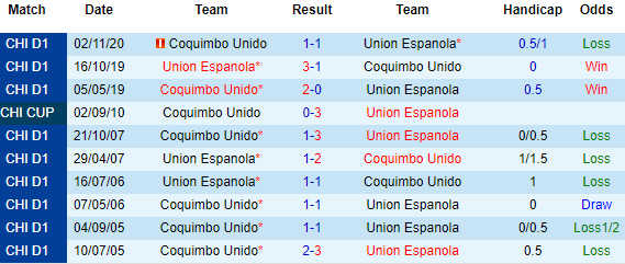 + Lịch sử đối đầu Espanola vs Coquimbo Unido