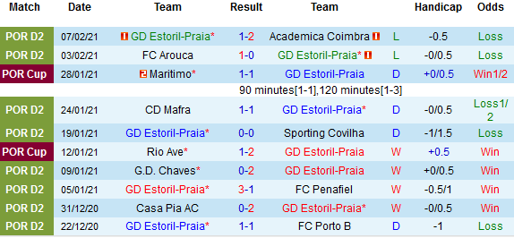 + Soi tỷ lệ kèo châu Á: Trên sàn giao dịch châu Á, Estoril không còn là địa chỉ đáng tin cậy cho giới đầu tư khi họ vừa thua 4 trong 5 trận gần nhất.