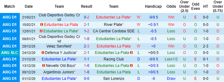 + Thống kê 10 trận gần nhất của Estudiantes