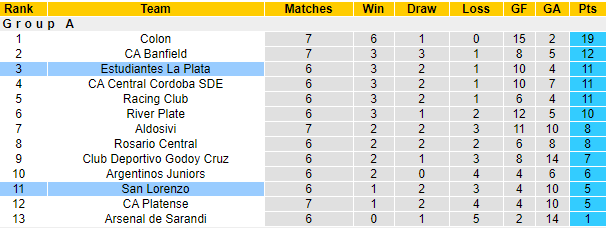 Hơn nữa, Estudiantes đang có dấu hiệu chững lại khi chỉ có 1 điểm ở 2 trận gần nhất. Dẫu sao thì họ vẫn còn khá hơn San Lorenzo. Đội bóng này hiện đứng áp chót ở bảng A và gần như không còn cơ hội vươn lên top dự tứ kết, do đã kém vị trí thứ 4 tới 6 điểm.