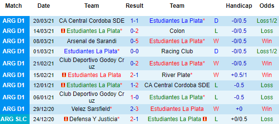 + Thống kê 10 trận gần nhất của Estudiantes
