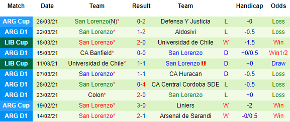 + Thống kê 10 trận gần nhất của San Lorenzo