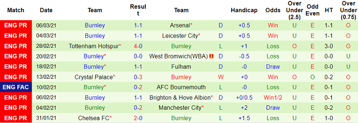 5/7 trận sân khách vừa qua tại Premier League, Burnley không ghi bàn. Họ chỉ thu về 1 điểm từ 5 trận không ghi bàn trên sân khách vừa rồi.