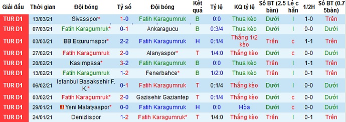 Phong độ gần đây của Fatih Karagümrük rất thất thường và có phần khá tệ khi ở 5 vòng đấu gần nhất đội bóng chỉ có được 1 trận thắng, 1 trận hòa và để thua tới 3 trận. Ngay trên sân nhà thành tích của Fatih Karagümrük cũng chỉ tốt hơn đôi chút khi thắng 3 và hòa 2 sau 5 trận đấu gần nhất tại đây.