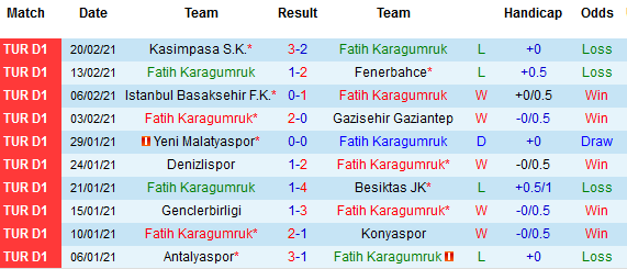 + Thống kê 10 trận gần nhất của Fatih Karagumruk