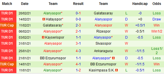 + Thống kê 10 trận gần nhất của Alanyaspor