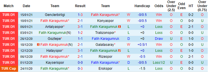 Fatih Karagumruk cho thấy dấu hiệu hồi sinh bằng 2 chiến thắng liên tiếp gần đây, xé lưới đối phương 5 lần. Trên sân nhà, Fatih Karagumruk bất bại 7 trên 8 trận đã đấu từ đầu mùa 2020/21 tính trên mọi đấu trường với 3 chiến thắng và 3 trận hòa.